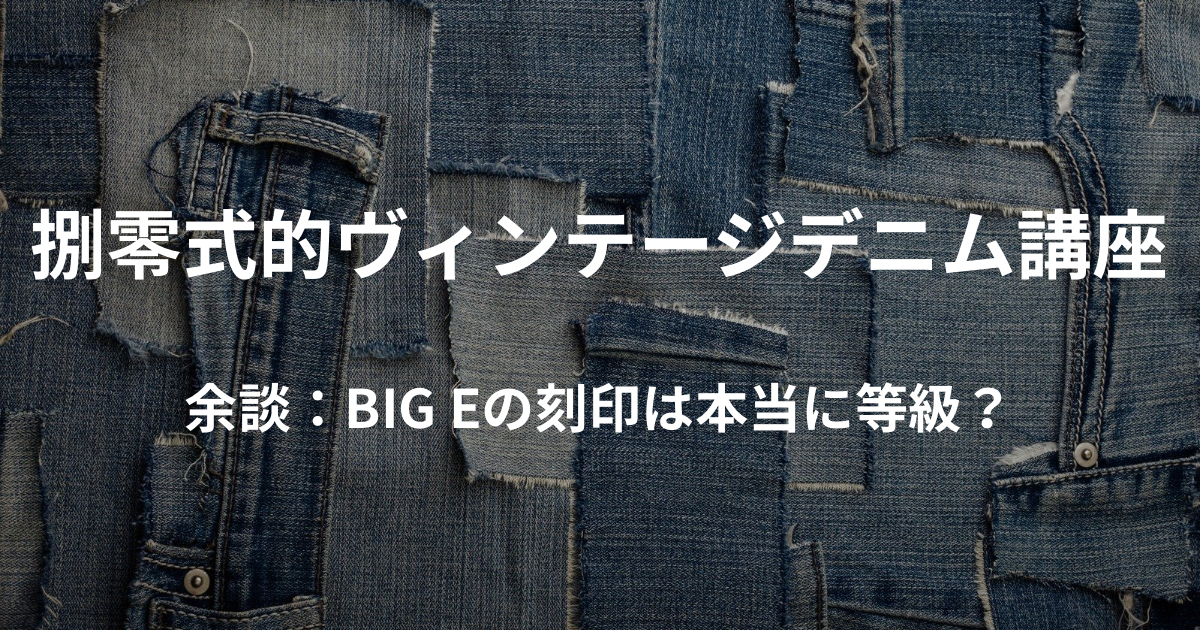 今回は、古着好きの間で昔から囁かれてきた「BIG E の刻印と等級の話」について書いていこうと思います。