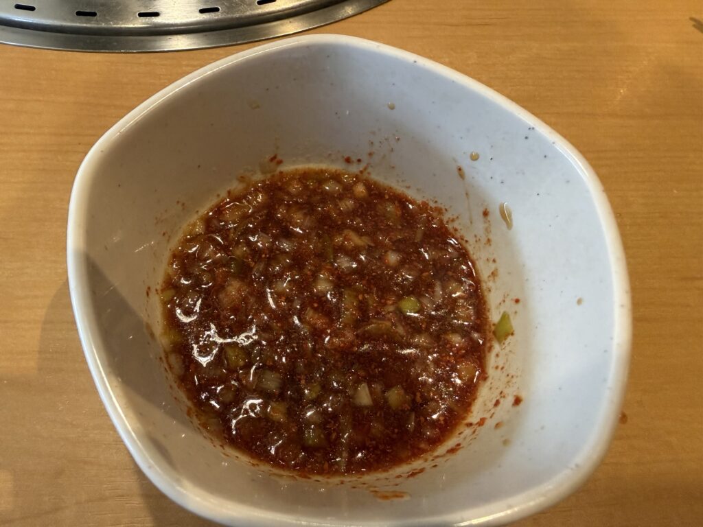 スタンダードに特製タレ+ニンニクが美味しいんですが、私達は塩タンをベースに食べ進めるので、私はポン酢+一味唐辛子+ネギ塩で塩タン用のタレを作って食べるのが好きです。
